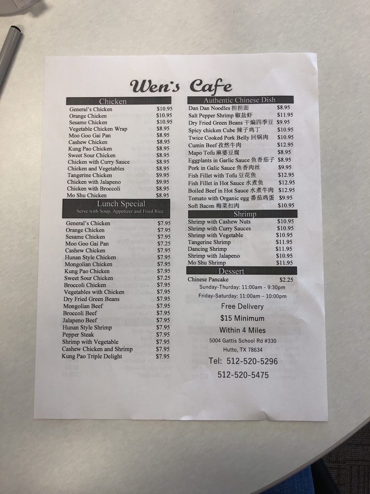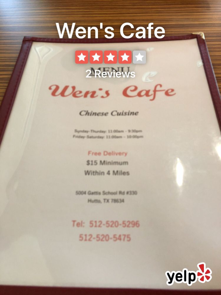 Introducing Wens Cafe, a Chinese restaurant located in Hutto, Texas, known for its delicious Chicken Wings, Chinese cuisine, and Noodles. The cafe offers a variety of options for its customers, including vegan choices, delivery, takeout, and catering services. The casual ambiance with moderate noise levels makes it suitable for groups and families. Customers rave about the generous portion sizes and the freshness of the dishes. Reviews highlight the Salt and Pepper Shrimp, Sesame Chicken, and the incredibly large shrimp dishes. The restaurant's dedication to quality and consistency has earned it a loyal following. Make sure to try their dishes for a satisfying Chinese food experience you won't forget.
